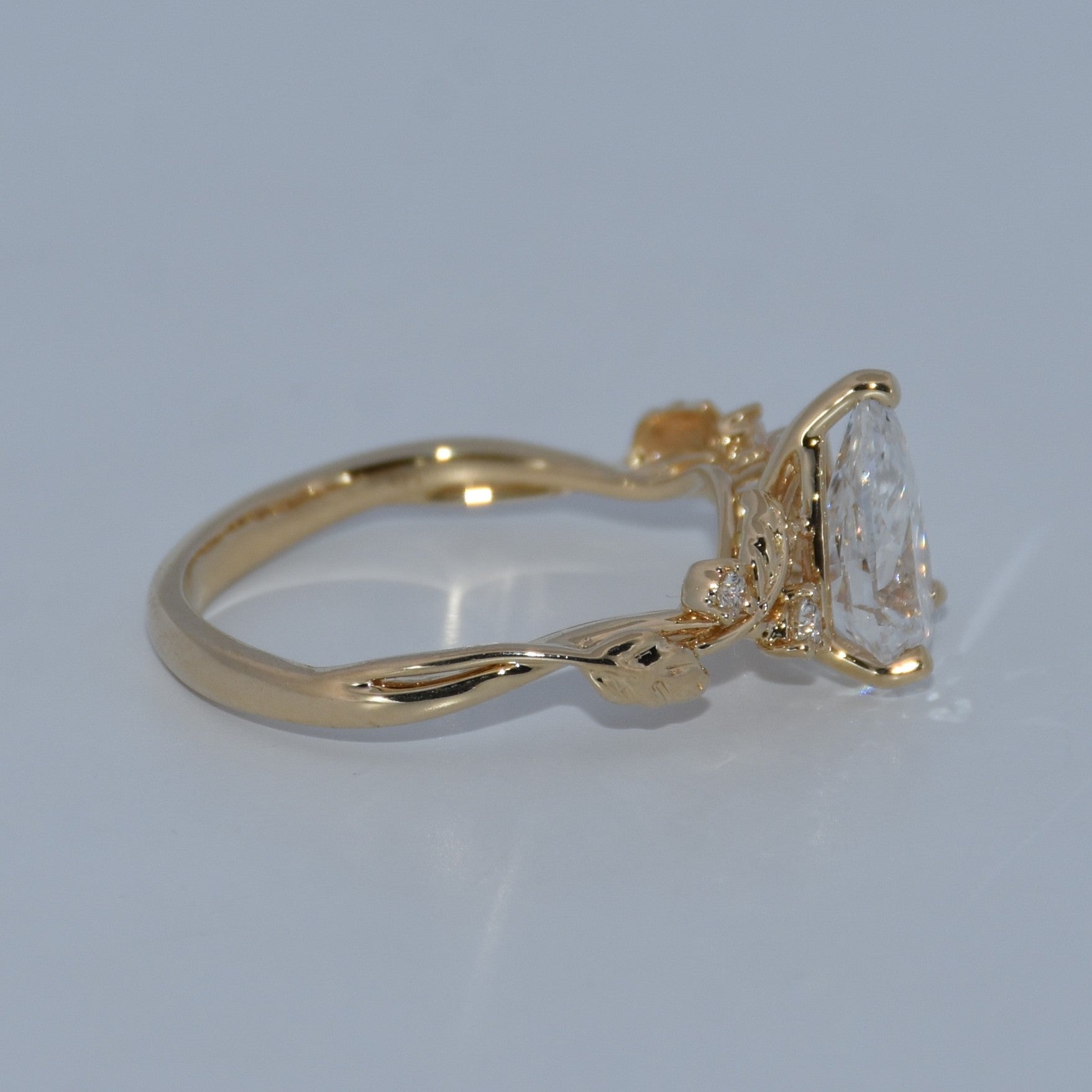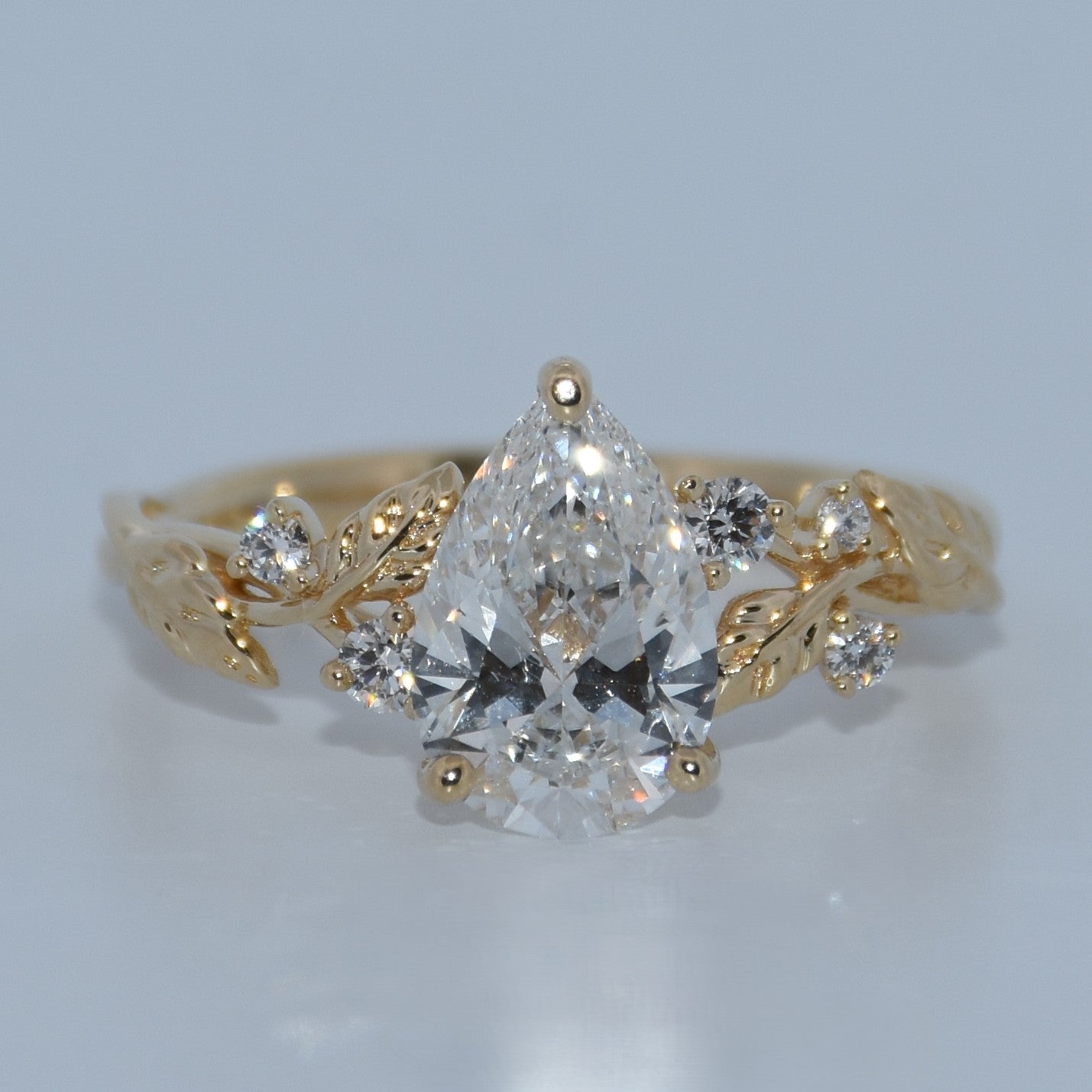 14K Gold | YG Lyria Bridal 1.69cttw Lab Pear w/ Natural Round Diamonds in Leaf Motifs Accent Engagement Ring