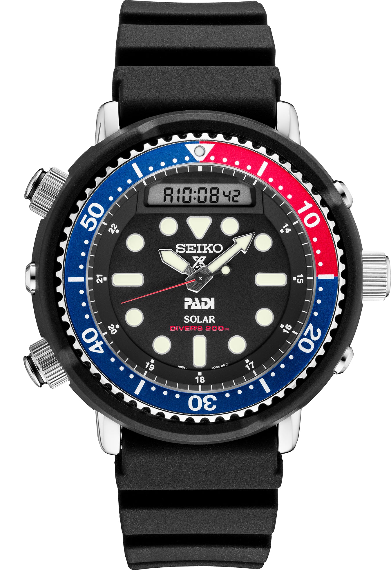 Seiko | SNJ027 Prospex Men's Solar Analog-Digital Silicone Black PADI Special Edition Diver Watch